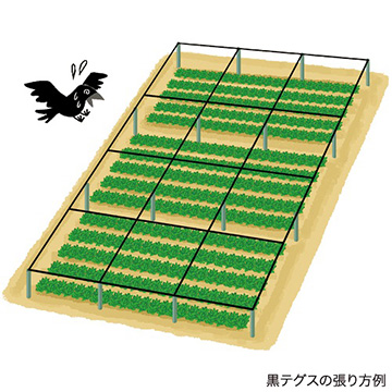 カラスは命の次に羽が大切だと言われています。テグスに羽が当たるとその場所に恐怖を覚え、近寄りにくくなります。