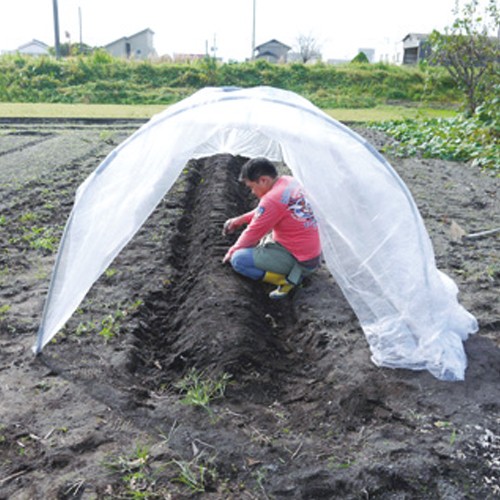 アーチは2分割式で、簡単組み立て。組み立て後のトンネル内部は、大人が出入りし、野菜の管理等ができる空間をもつことができます。19φ亜鉛メッキスチールアーチパイプ使用。(日本製)