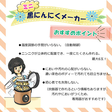 ※作り始めの1週間程度は、強いニンニク臭がします。ニンニク臭で近隣にご迷惑がかからない場所でお使いいただくようお願いします。