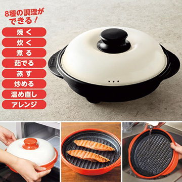電子レンジ専用調理器 レンジメートプロ ブラック台 ¥10,800電子レンジ調理なのに魚や肉に焼き目がつく!