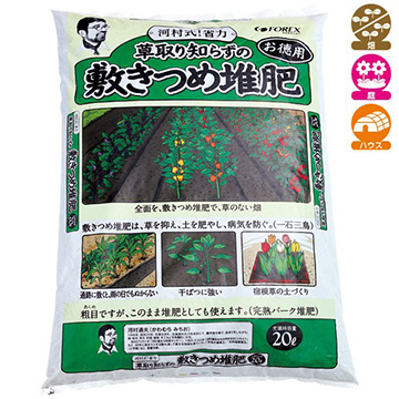 草取り知らずの敷きつめ堆肥 1組(20L入×4袋)組 ¥3,840畑に敷き詰めて草取り知らず!そのまますきこめば来年の堆肥に!!