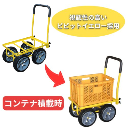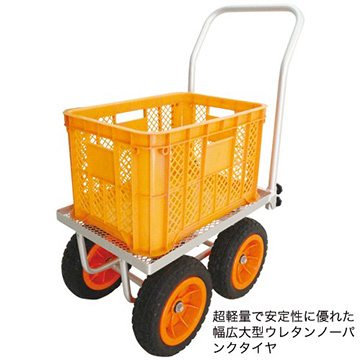 ノーパンク仕様の大きなタイヤ!畑作業での荷物の運搬に便利!