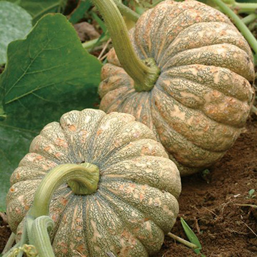 カボチャはアメリカ大陸原産で、ウリ科の代表的な野菜です。日本では主にセイヨウカボチャ、ニホンカボチャ、ペポカボチャの3種類が栽培されています。日本へは、まず天文10年(1542年)に、漂着したポルトガル船によりニホンカボチャがもたらされました。セイヨウカボチャは文久3年(1863年)にアメリカ合衆国より伝来し、明治時代になってから多くの品種が導入されました。 カボチャはビタミンやカロテンなどを豊富に含み、栄養価の高い緑黄色野菜に分類されています。また、果菜の中では最も強健であり、病虫害も比較的少ないので、家庭菜園では無農薬栽培も十分に可能です。 生育適温は20~28℃ですが、セイヨウカボチャはやや冷涼な気候を好み、平均気温が23℃以上になるとでんぷんの蓄積や生育が弱くなります。土壌適応性も広く旺盛に育つので、1株でもかなり広い面積をとってしまい注意が必要ですが、垣根に這(は)わせたり、日よけ代わりに棚づくりを楽しむなどの工夫ができます。ただし、チッソ過多になるといわゆる「つるぼけ」を起こし、落果の原因となるので気をつけましょう。