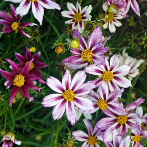 アメリカでの品種改良が進み、原種系の選抜種中心だった園芸種が、ここ10年の間にさまざまな改良なども加わり、多くのハイブリッド種が誕生しています。初期のころは主に耐寒・耐暑性を有するヴァーティシラータ(verticillata)種などと、花色鮮やかな一年草との交雑から現在も流通しているバラエティーが生まれ、それらをベースとして次々と品種ができたのです。