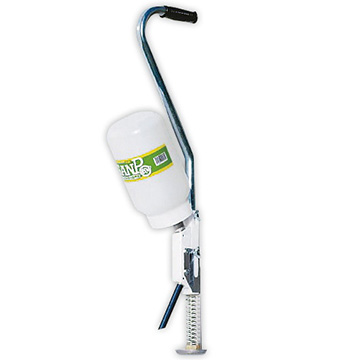 株元への粒剤散布が歩きながらラクラク!ハンドルを押さえる「ステッキ式」の画期的散粒器