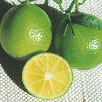 果肉はピンク色、実には緑色のストライプが入るカラフルレモン!