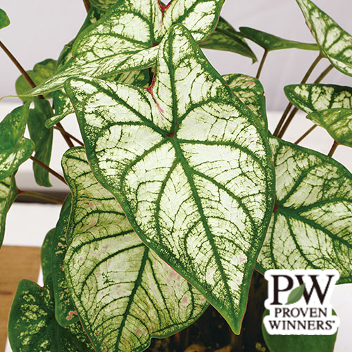 ガーデンカラジューム・ハートトゥハート スノードリフト4株/春 ¥3,700日なたから日陰まで楽しめる、ガーデニング用カラジューム!