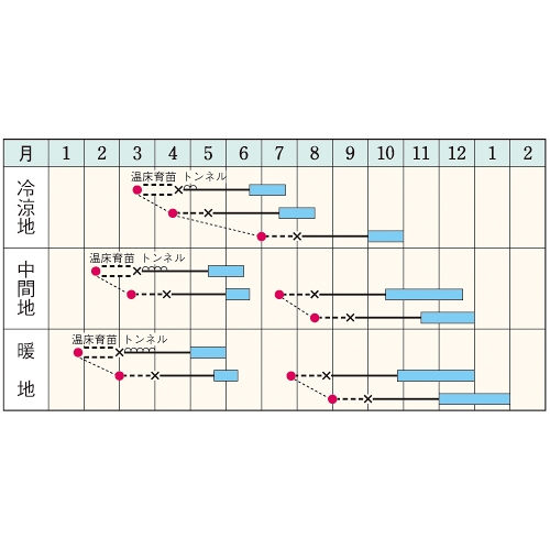 - 野菜品種における耐病性、台木についての記号の説明はこちらをご確認ください。