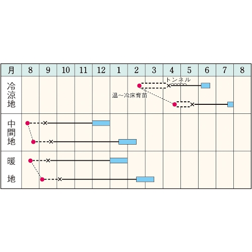 ※収穫期(○○どり)は中間地(平坦地)を基準とした目安です。