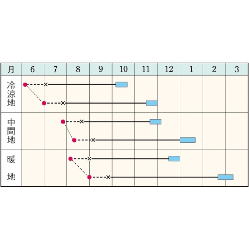 ※収穫期(○○どり)は中間地(平坦地)を基準とした目安です。