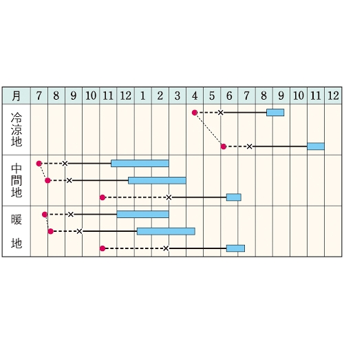 ※収穫期(○○どり)は中間地(平坦地)を基準とした目安です。