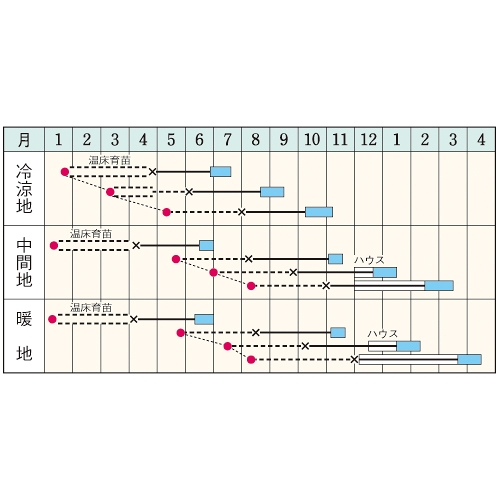 - 野菜品種における耐病性、台木についての記号の説明はこちらをご確認ください。