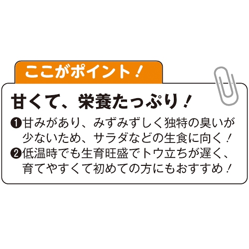 - 品種、地域、時期によっては、すぐには播種できない種子があります。必ずご当地にて、播種が可能かご確認のうえ、お買い求めください。