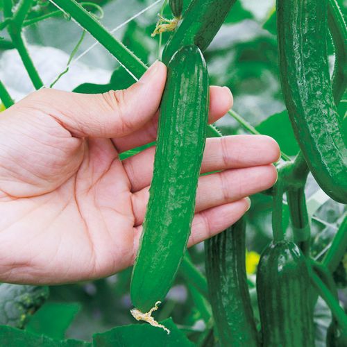 1節に1~2着果する節成で側枝も発生し、後半まで収量が安定する。果実に歯ごたえがあり、苦みがなく、サラダ等の生食以外にも漬物にも向く。