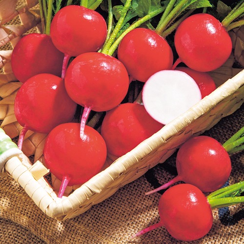 生育が早く揃いのよい赤丸二十日ダイコンの一代交配種。裂根の発生も少ないため作りやすい。表皮はテリのある赤色で、内部は白肉。サラダや浅漬に向く肉質。