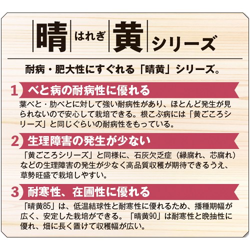 耐病・肥大性にすぐれる「晴黄」シリーズ。