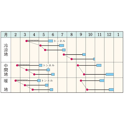 - 野菜品種における耐病性、台木についての記号の説明はこちらをご確認ください。