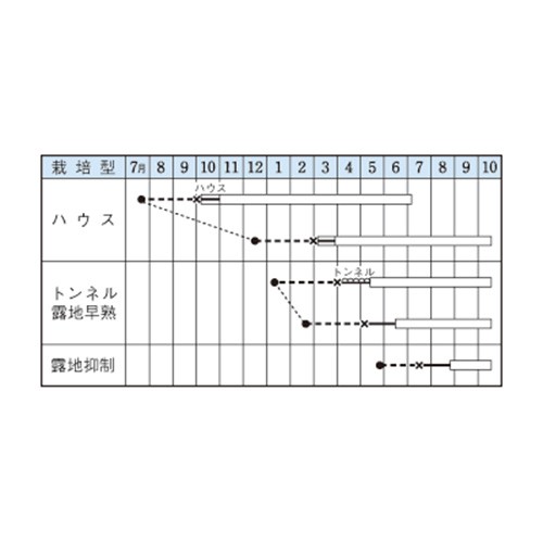 - 花期、収穫期(○○どり)、高さ、収穫重量などの性質は、一般平坦地における適期栽培でのおおよその目安です。