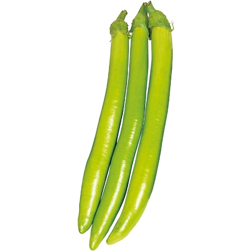 果色は鮮緑色で、果長が30cm位の首が太い大長ナス。草勢が旺盛で、作りやすくたくさんとれる。果肉がやわらかくて、甘みが強く、焼きナスや、天ぷらにおすすめ。