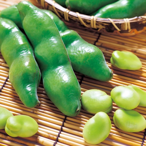 3粒莢率が特に高い大莢の一寸ソラマメ。子実の大きさは3cm程度、ボリュームがある大粒で食味良好。子実の色は鮮緑でへそ(おはぐろ)の色は変色しない。分枝が太く、莢つき・太りが安定している。草勢旺盛で作りやすく、たくさんとれる。