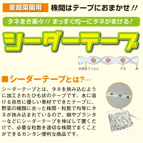 (シーダーテープ:20m巻、株間5cmごと(400カ所)に約3粒詰め。)