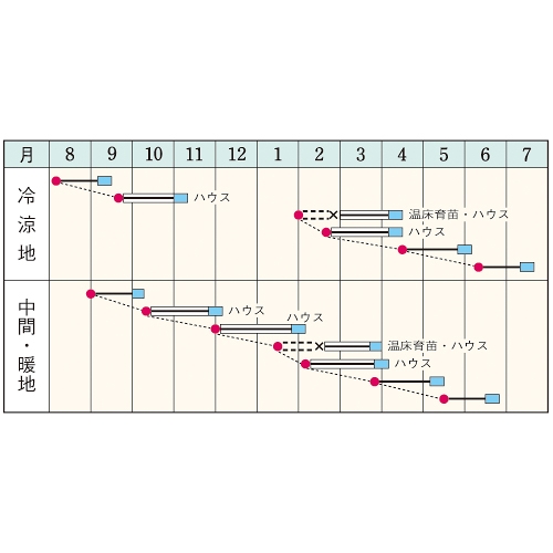 - 野菜品種における耐病性、台木についての記号の説明はこちらをご確認ください。