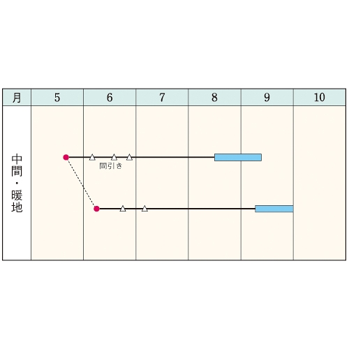 - 花期、収穫期(○○どり)、高さ、収穫重量などの性質は、一般平坦地における適期栽培でのおおよその目安です。