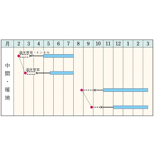 - 野菜品種における耐病性、台木についての記号の説明はこちらをご確認ください。