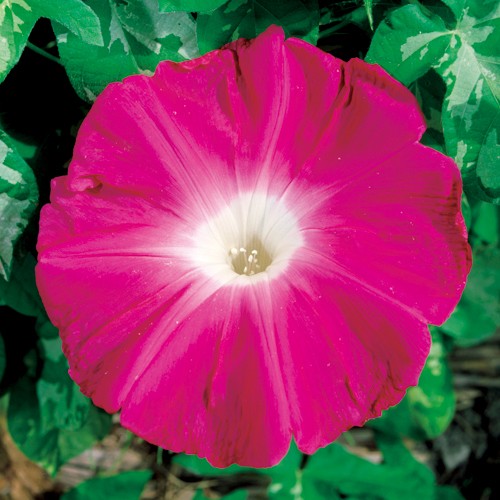 朝顔の中で最も大輪に改良された品種で、葉には斑が入る。あんどん作り等に好適。本葉が10数枚になるとつるが伸びる。