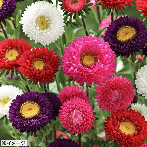 花径約5cmで黄色い花芯と花びらのコントラストが美しい。分岐力が極めて旺盛な多花性で、アスターの中でも耐病性、耐寒性が強く、作りやすい品種。切り花に好適。