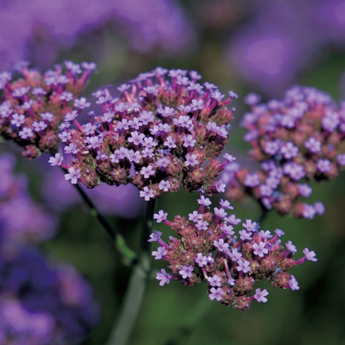 非常にコンパクトな株姿で、分枝が多くたくさんの深い青紫花を咲かせる。開花期が長く降霜時まで花を咲かせ、暑さや多湿にも強い。ボーダー花壇のほか、コンテナ植えや造園用にも好適。コンパクトに生育し、分枝性にも優れ、各色の開花揃いもよく育てやすいシリーズ。クマツヅラ科