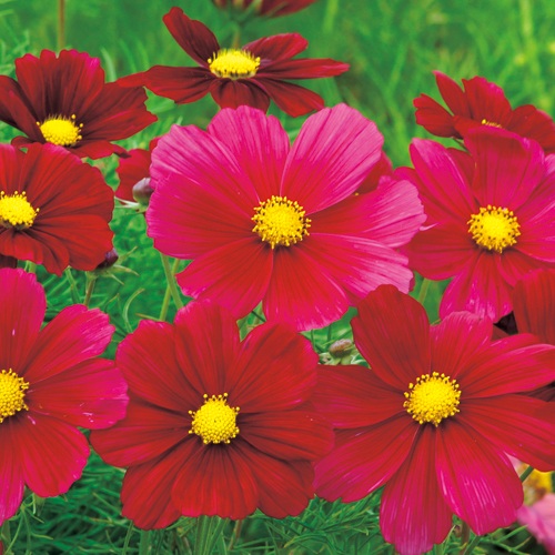 花径約7cmの中矮性で分枝性に優れ倒れにくくコンパクトにまとまる。鮮やかなルビーレッドの花色が魅力的で、鉢植え、花壇どちらも楽しめる。