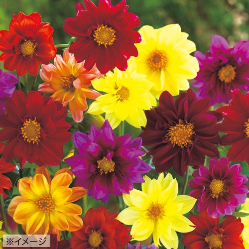 明るい花色で空間が華やぐタネから育てるダリア。苗作りも容易なのでいろいろな場所で利用でき、夏から秋まで長期間楽しめる。草丈が低いので倒れることもなく、花壇、切り花、寄せ植えなどで楽しむことができる。キク科
