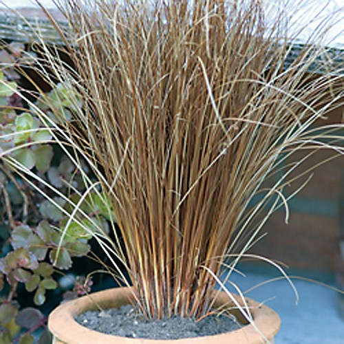 葉色が独特の銅色で寄せ植え、アレンジ、庭植えのアクセントに最適。イネ科