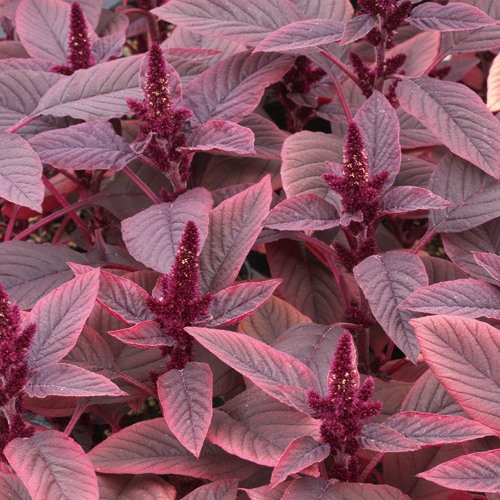 レッドリーフが美しい品種。花も切り花で楽しめる。地植えして花壇で育てると大きく生長して存在感がある。ヒユ科