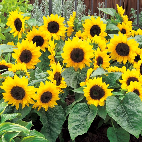 上部で枝分かれして花が次々楽しめる新しいタイプの矮性ひまわり。日長の影響はあまり受けずに適温であれば55日前後で開花する。無花粉で花持ちもよく長期間楽しめる。花壇では草丈30~40cm。ポットや小さな鉢でのミニひまわりも手軽に楽しめる。