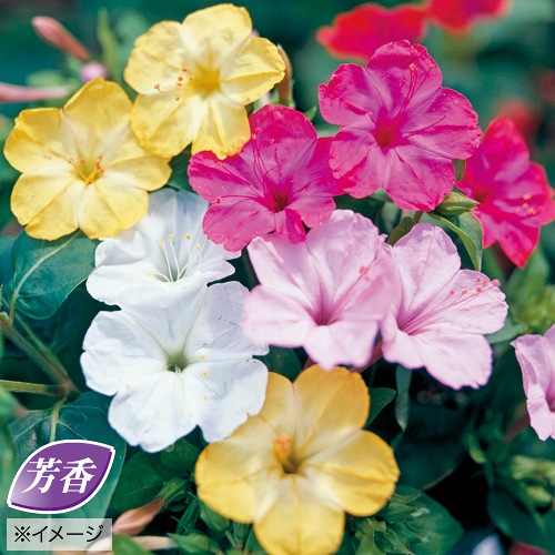 花径3cmほどの香りのよい花を長期間楽しめる。強健で作りやすい。オシロイバナ科