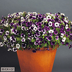 這うように広がるペチュニア2品種の混合。1株でも60~90cmほどに広がる。大鉢やプランター、花壇のほか、ハンギングバスケットもおすすめ。