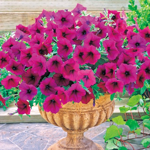 草姿、花色、花形も多様なバリエーションが魅力で、暑さ、乾燥にも強く、夏の花壇を彩るのに欠かせない。ナス科