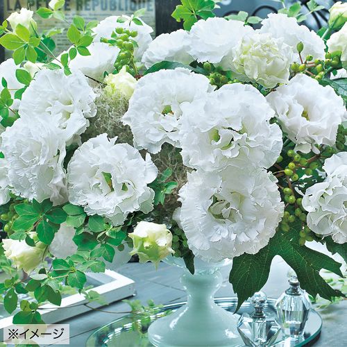優美な花姿で人気の高い花。イベントの装飾花や花嫁のブーケなどに使われるように、清楚な気品に溢れ、水揚げがよく、切り花に重宝されている。リンドウ科