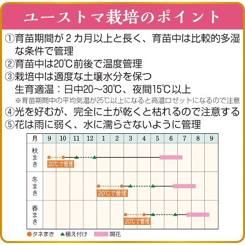 - 品種、地域、時期によっては、すぐには播種できない種子があります。必ずご当地にて、播種が可能かご確認のうえ、お買い求めください。