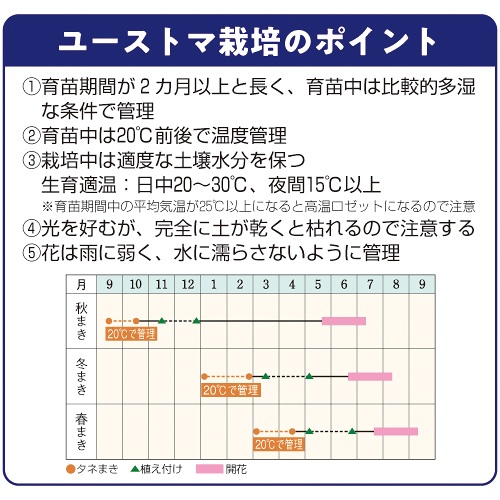 - 品種、地域、時期によっては、すぐには播種できない種子があります。必ずご当地にて、播種が可能かご確認のうえ、お買い求めください。
