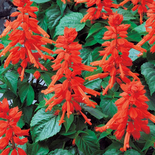 サルビアの一般的なタイプ。花期が長くて、緋赤色以外にも多彩な色を楽しめる。