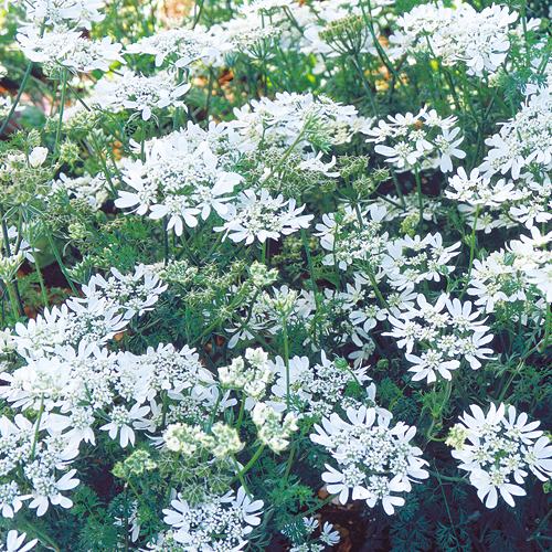 茎の先に雪のように白い清楚な花を咲かせる。切り花としても長もちするのでおすすめ。セリ科