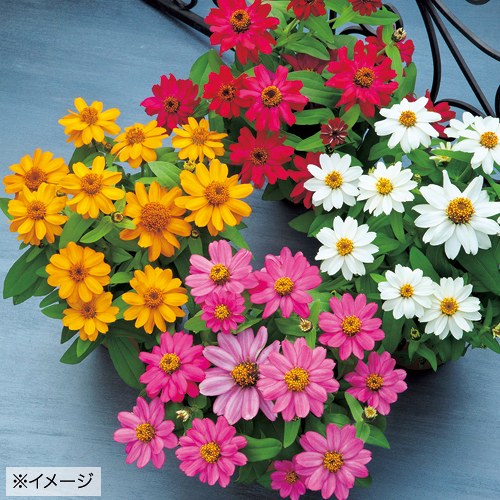 生長が早く、丈夫で作りやすい百日草。タネを何回かにわけてまくと、次から次へとカラフルな花を咲かせる。キク科
