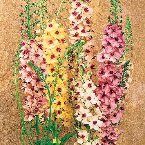 宿根性でカラフルな花の中央にファジーパープルのビーズが入るユニークなミックス。ゴマノハグサ科