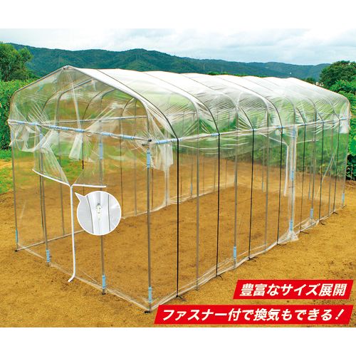 シンプルな設計なので、組み立てがとても簡単です。農業用ビニール仕様のため、保温効果がよいです。亜鉛メッキパイプ(樹脂コーティング)使用で、耐久性にも優れています。春夏は雨よけとして、秋冬は温室ハウスとして1年中使えます。(日本製)