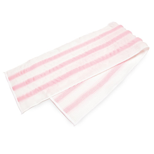 シルク(絹)100%の生地を麻綿メッシュ生地を1枚ずつ重ね合わせ、その生地の間に通気性のよい特殊スポンジを1本ずつ入れ丁寧に手作業で縫製されています。この3層構造により、シルクタオルのイメージを覆すほどの豊かな泡立ちを実現しました。(日本製)