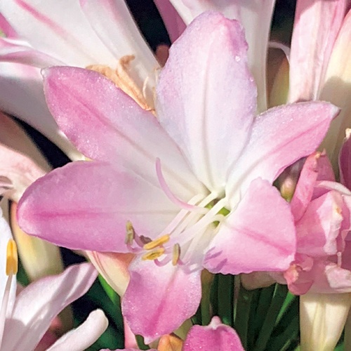 めずらしいピンクのアガパンサス。白い花弁の縁がピンクに染まる、通常の青花や白花とは一線を画す、注目の品種。ヒガンバナ科