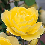 しなやかな枝に房状に花を咲かせる、ランブラーローズの「シルエッタシリーズ」最新品種。レモンイエローの小花が可愛らしく、秋にも返り咲き、シリーズで唯一爽やかな香りも楽しめる。コルデス作出。バラ科